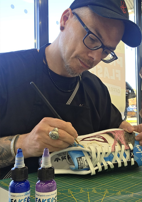 Join an exclusive one-on-one sneaker customization masterclass supervised personally by Gohji Custom. This private session is designed for those who want a deep, hands-on learning experience with direct guidance at every step — from concept creation to professional painting techniques and finishing details. You will learn industry-level methods, tools, and secrets used by real custom artists, while developing your own unique style. This is not just a workshop; it’s a premium masterclass experience focused entirely on you, your pace, and your creative vision.